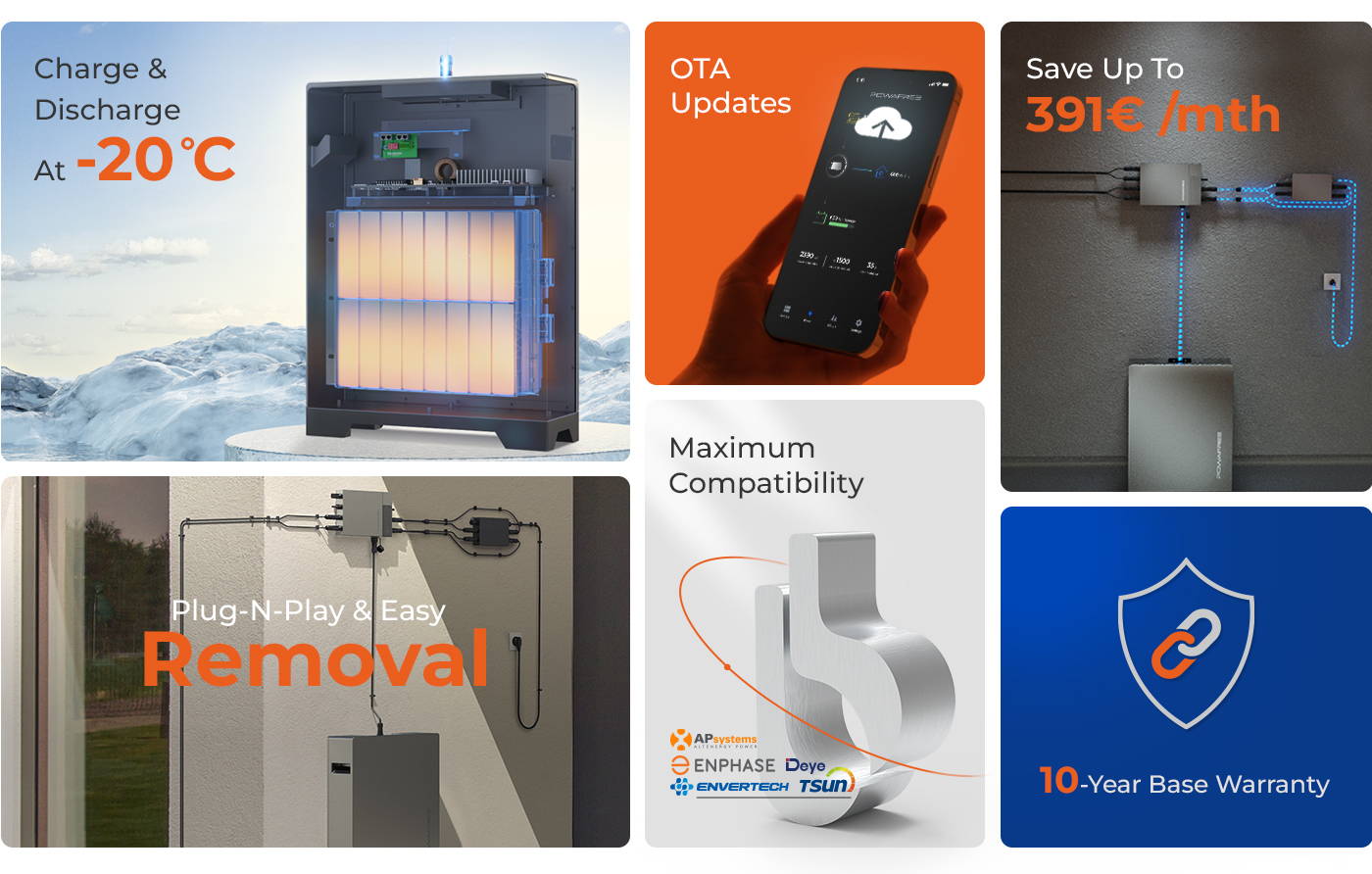 POWAFREE Balcony Solar is more than just a power station. You are getting a compact energy storage system - a combo of a PV controller, solar battery, and flexible solar panels (recommended for separate purchase, available in 200W, 135W & 100W).